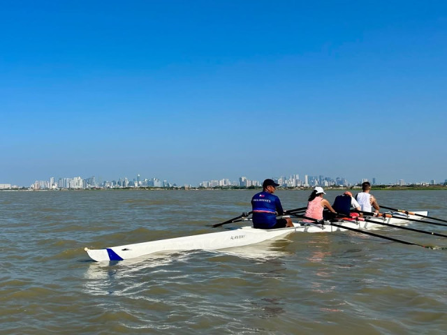 Club members Didi Dolan, Victor Platon, Kris Ablan, Lynne Frayna, Jose Evangelista, and Clarice Evangelista rowed in 2 quads set off at about 5:30am this morning to visit the Napindan Parola Lighthouse in Laguna de Bay, 14.5 kms away from the departure point of Manila Boat Club in Sta. Ana. They were joined by Coach Benjie Tolentinto and his son, Athens Tolentino. The round trip journey took 3:30 hours. The members enjoyed this annual activity of the club which will definitely be reinstated as an annual event with perhaps a second one on All Souls Day.